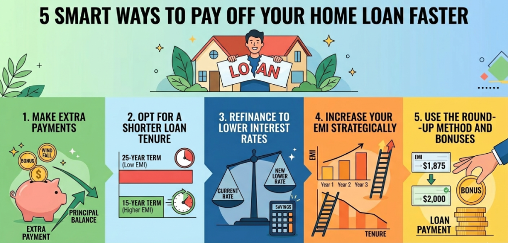 Buying your dream home is definitely a milestone. Although it’s a bit of a hassle, it shouldn’t be chaotic; it can be when it comes to repaying the loan. While the rising home loan interest rates can be troublesome, you can reduce them effectively and pay off your loan faster! Are you wondering how? Then let’s discuss 5 such ways that can help you free yourself from your long-standing liability. But all you’ll need first is patience and perseverance to do so.